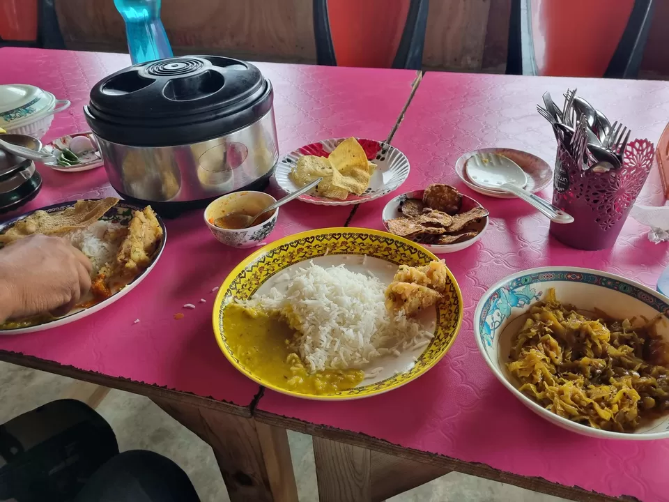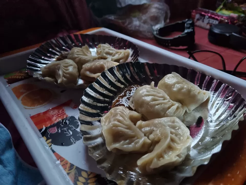 As the evening came, we enjoyed piping hot momos served in our cozy room. The darkness outside made our retreat even cozier. With the night all dark, we spent time chatting, with the delicious smell of Roti, Chicken, and Alu Bhaja filling the air at dinner time. It was a feast that made us drift off to sleep happily after a day full of adventures.