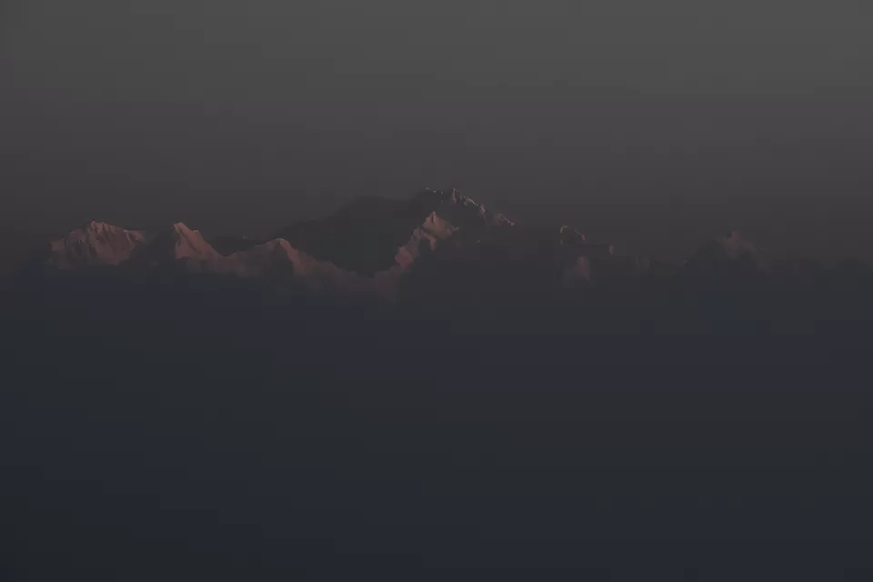 The next morning became a special memory because of the happiness it brought. I woke up to see the Kanchenjunga mountain glowing in the morning light. It filled me with so much joy that I woke up my friend immediately from his profound sleep. Despite the cold weather, we got out of bed and wrapped ourselves in blankets to go outside. Amidst temperatures hovering around 2 degrees Celsius, we stood transfixed, our hearts filled with gratitude for this unexpected gift of nature. Our camera lenses were pretty tired when we got back to our room after inhaling as much Kanchenjunga as possible.