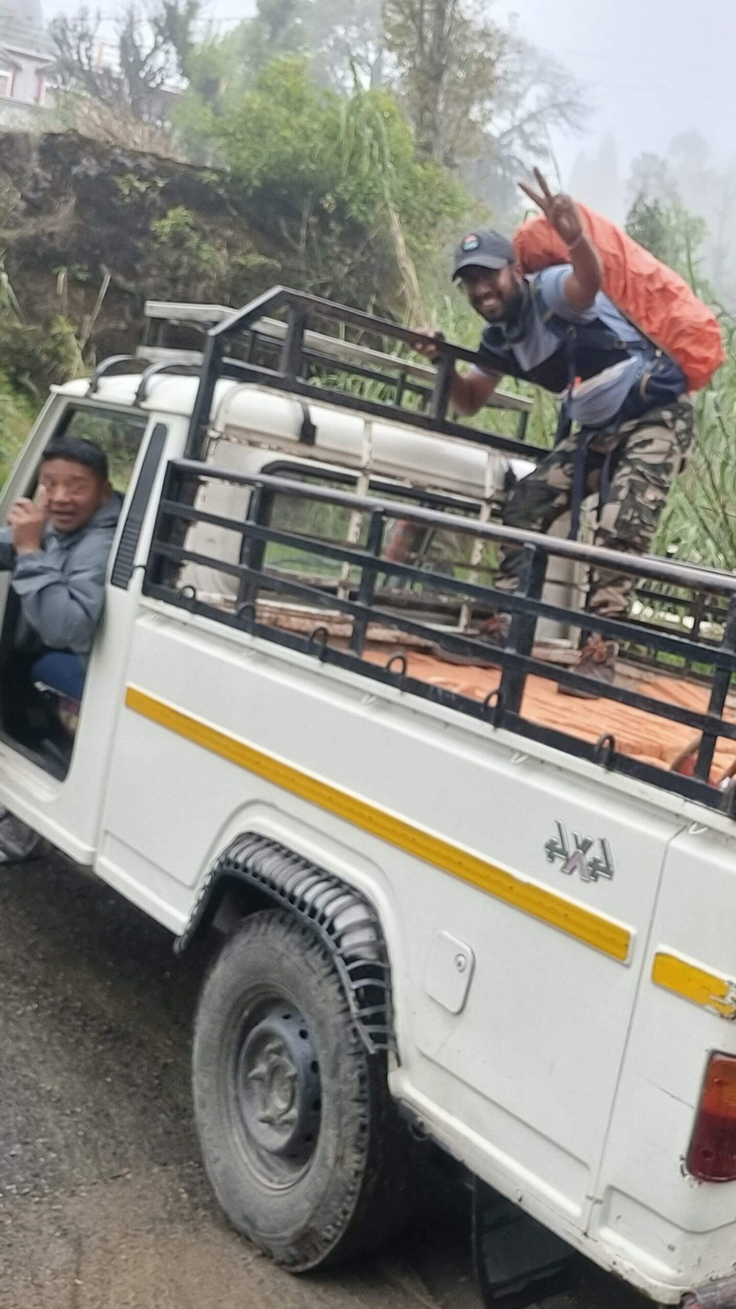 Our journey took a favorable turn when, after walking for 45 minutes and covering just 1 kilometer, we came across a truck carrying bricks along the jungle path. Seeing an opportunity, we asked the driver for a ride. Despite the adverse conditions, the driver kindly suggested we sit on the bricks for a lift to Lower Chatakpur. Excitedly, we accepted.